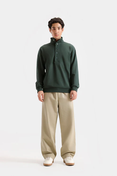 This Basic Quarter Placket Sweatshirt offers understated elegance with its mock neck and full sleeves. Designed for a refined yet comfortable fit, it features a simple quarter placket that adds subtle sophistication. Ideal for both casual and polished looks, this sweatshirt enhances your wardrobe with timeless style and versatility.